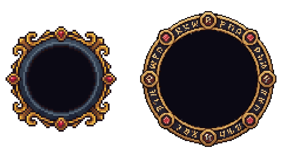 - Portrait Frames — 2 ornate frame styles (gothic scrollwork and runic circle)
