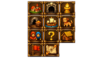 - Map Icons - 12 large detailed icons for world maps (town, cave, ship, camp, NPC, and more)