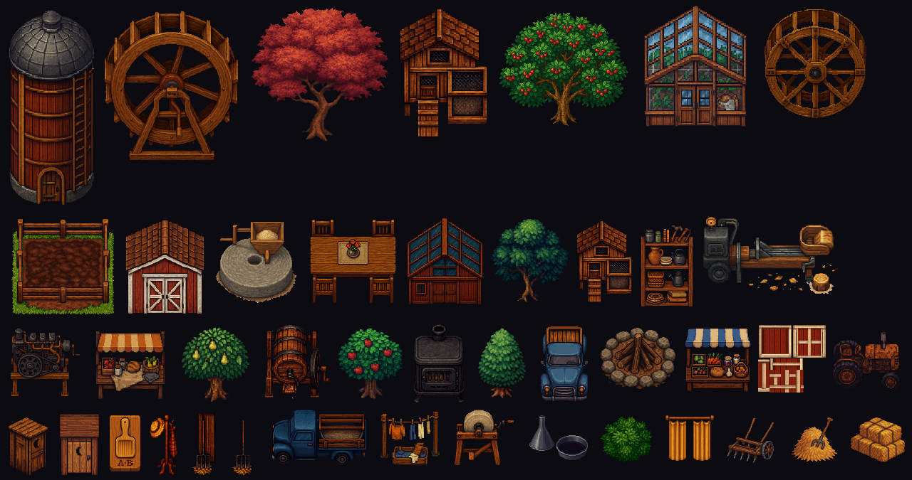 Farmstead Pixel Art Pack — 180 assets best suited for expanding country farm environments.